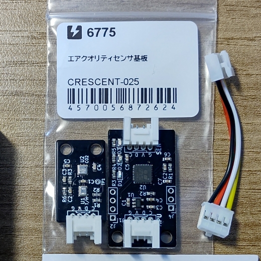 今年1月に、CO2センサーを探している中で、CO2相当(eCO2)の測定が可能なセンサーがいくつかあり、その中で室内の空気質の指標が取得可能な Renesas の 空気質(IAQ)センサー ZMOD4410 を搭載した エアクオリティセンサ基板(Crescent) を、スイッチサイエンスで購入。価格は 4,800円(税込)。