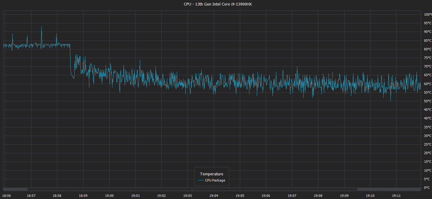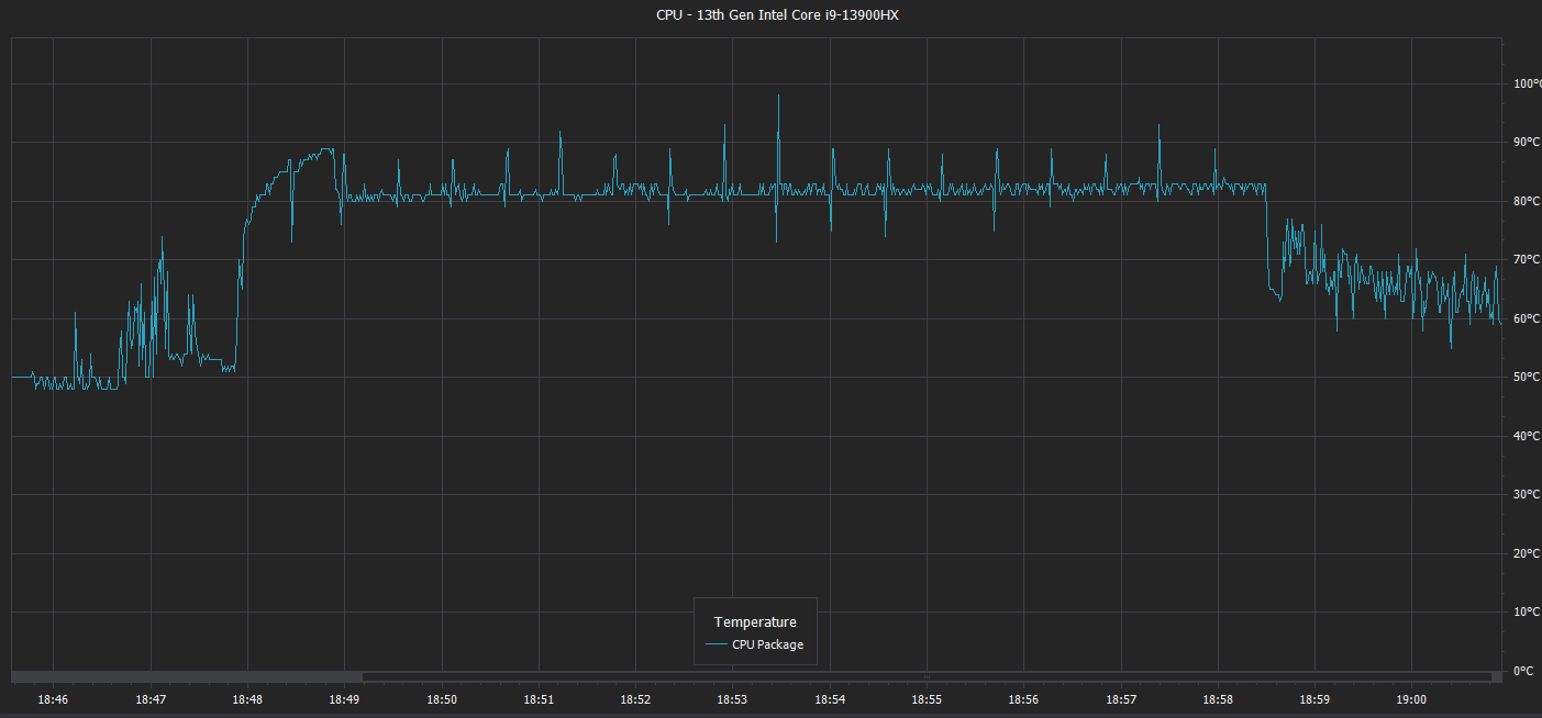 Multi Core時は開始直後90℃近くに、以降は80℃くらいで推移。