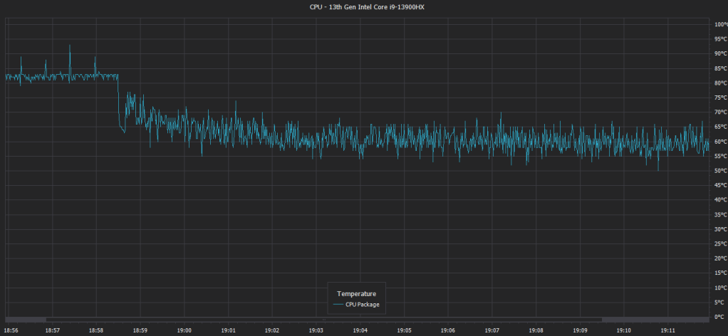 以下、フレームレート・CPU/GPUの温度・使用率・動作クロックの変化。
